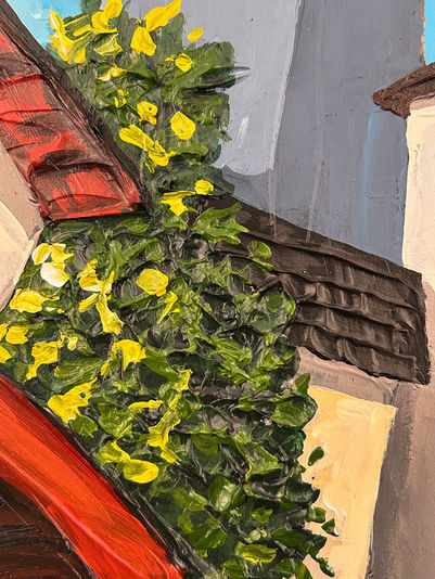 Textured original on wood panel.  Edges are 1.5" thick, finished in black and ready to hang.